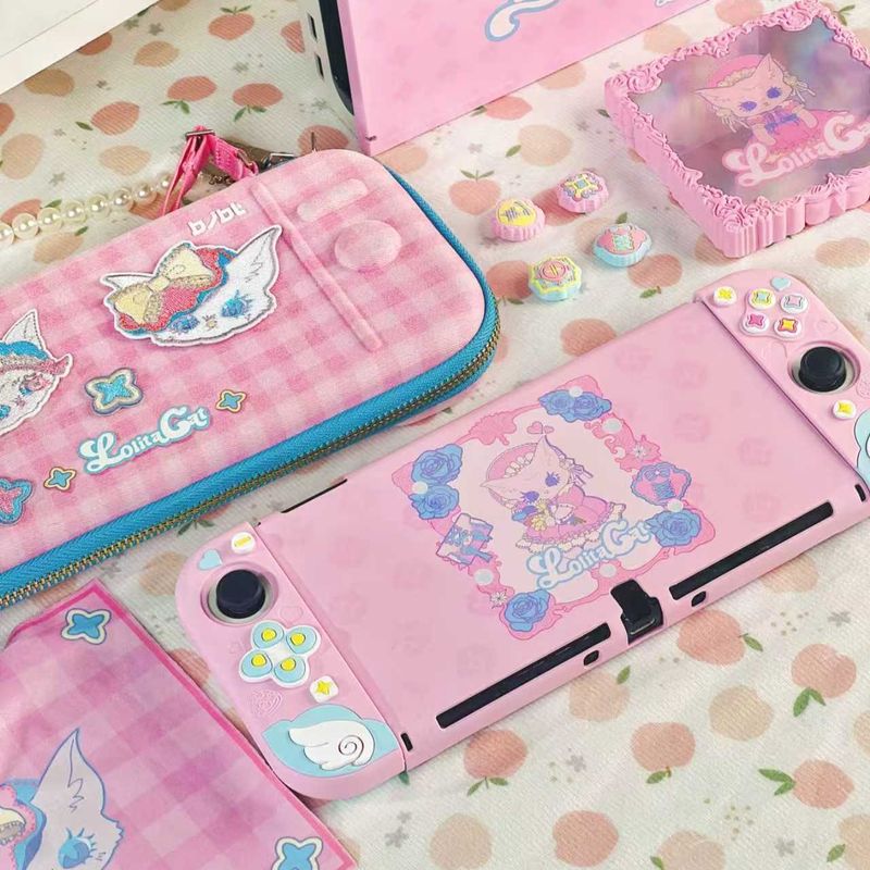 Kawaii Lolita Style Switch Protective Case Compatible with Nintendo Switch 2/OLED Console Controllers Joy-Con Cover Girl Gift