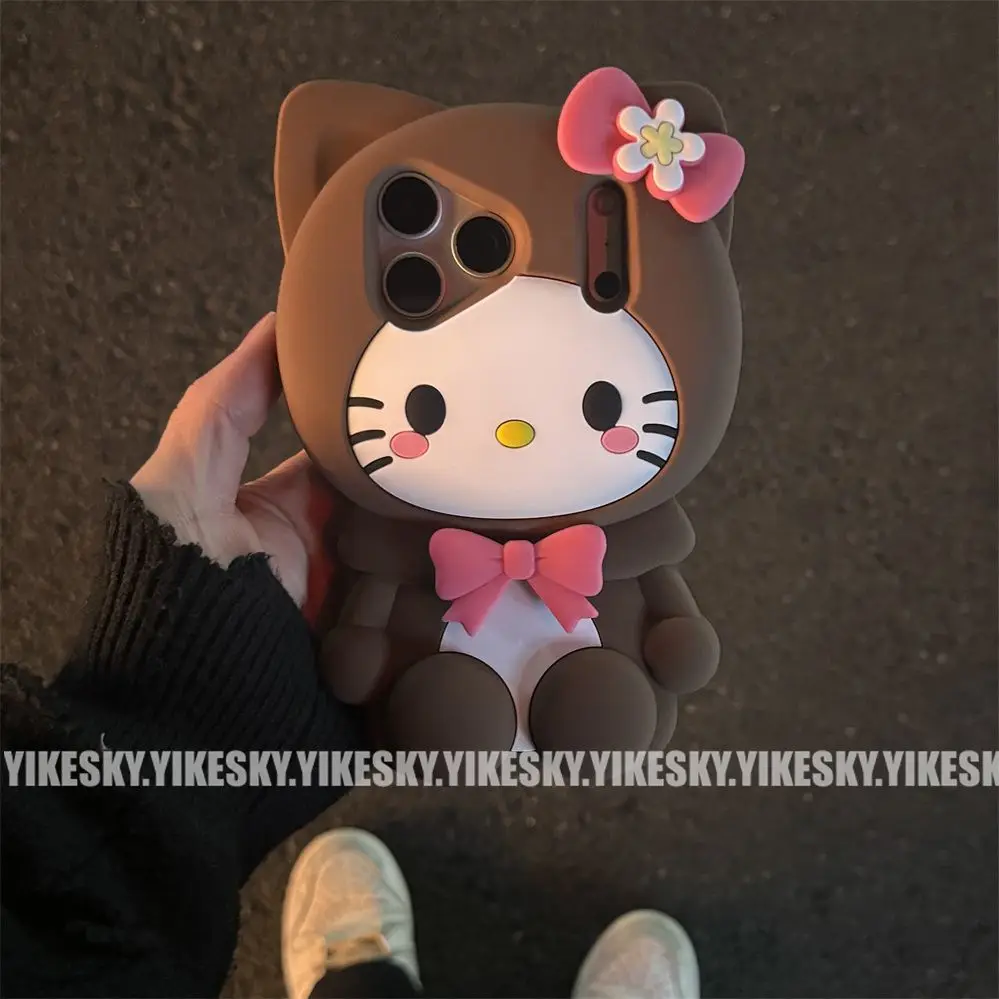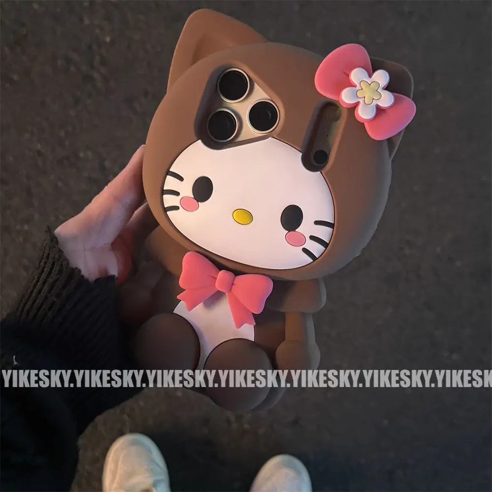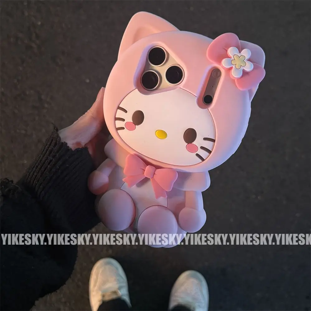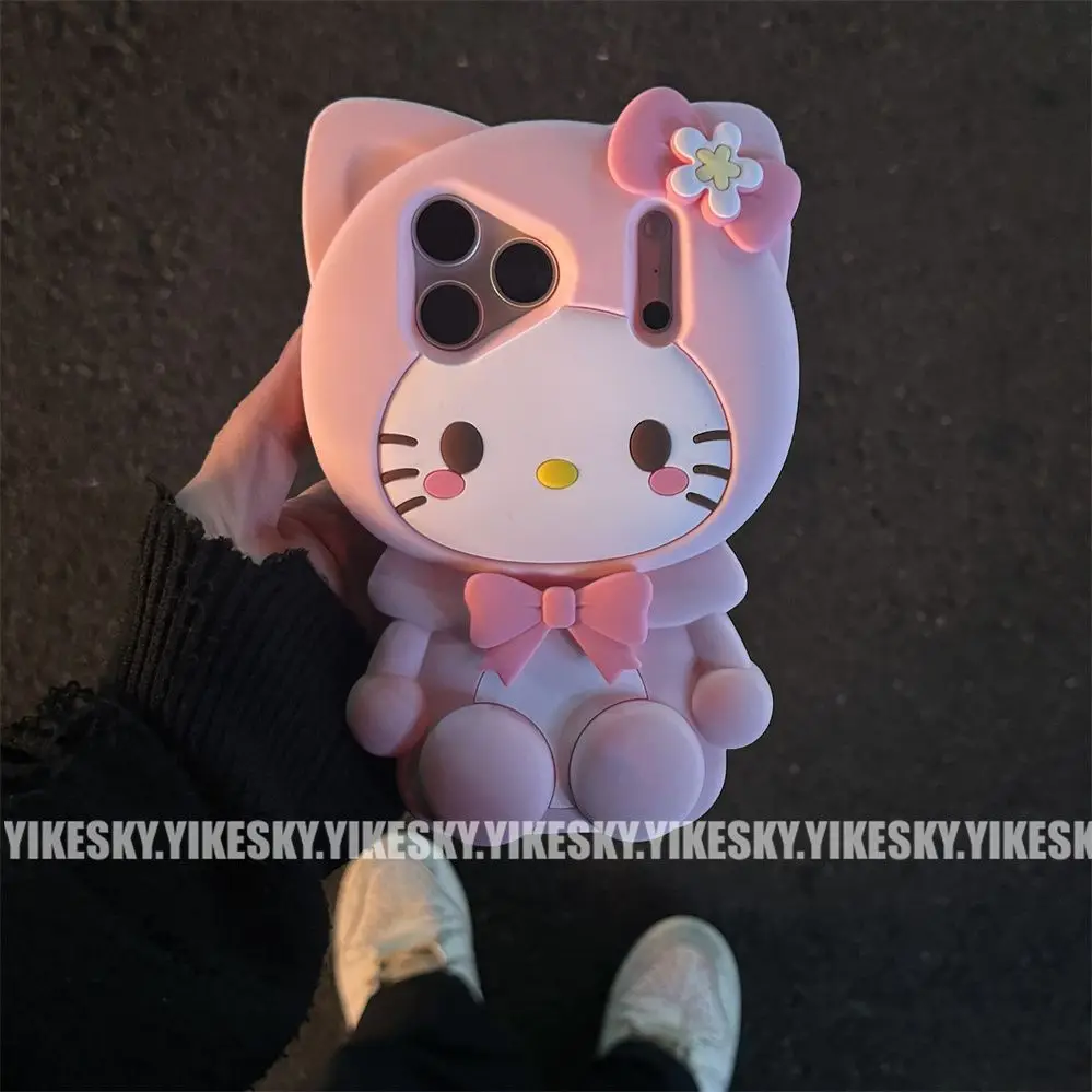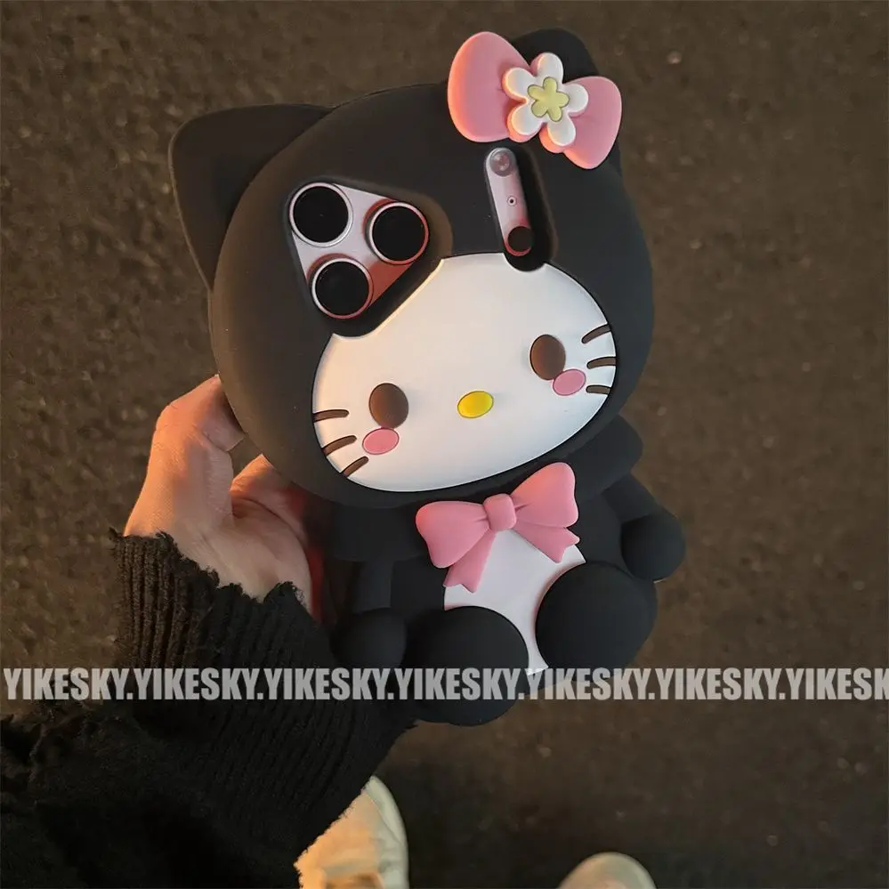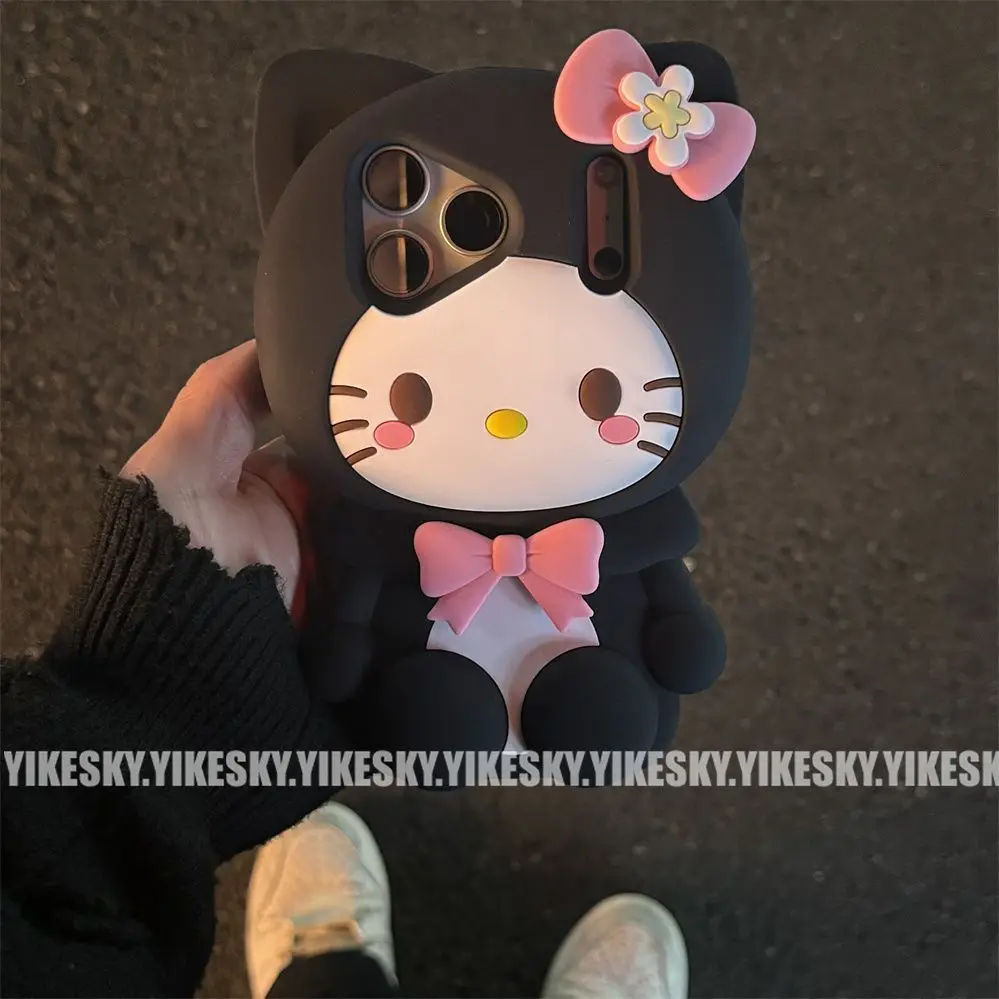 Kawaii Sanrio HelloKitty 3D Sweet Punk Bow Silicone Case for IPhone 17ProMax 16 15 13 Cute Anime Cartoon Holiday Gift for Girls