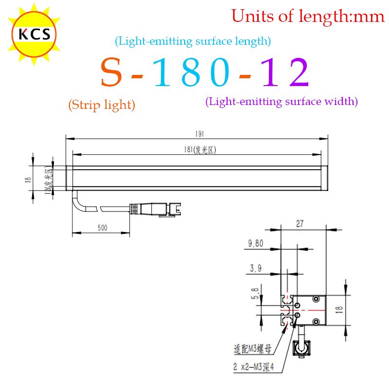 KCS LED Strip Light Machine Vision Bar Light 24V Long Strip Light Inspection Long Strip Light Source Detection Recognition Lamp