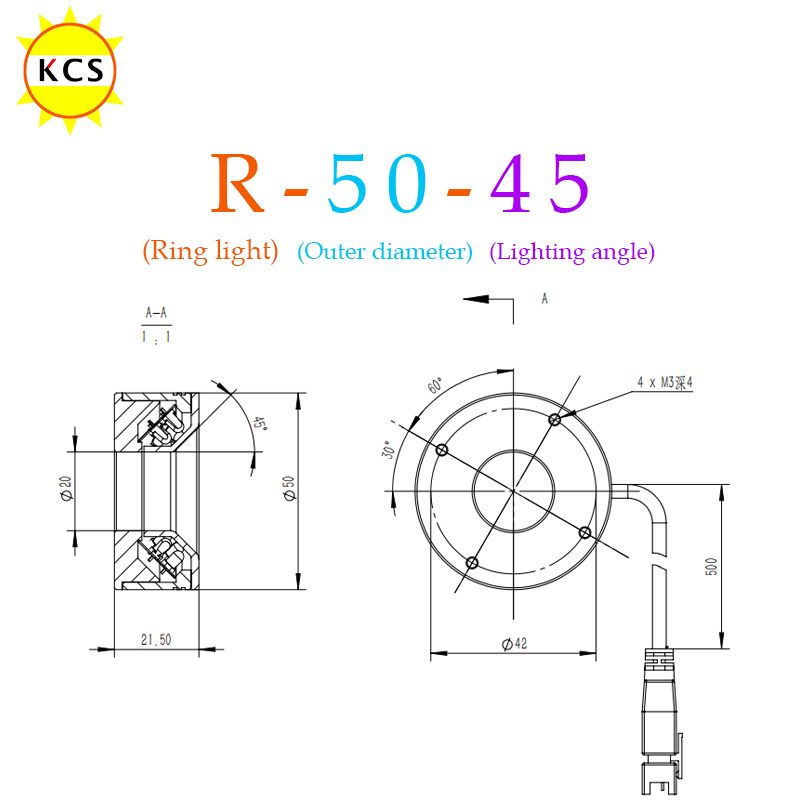 KCS Ring Light Source LED Ring Light Machine Vision LED Working Ring Light Outer Diameter 30-70 Electronic Components Inspection
