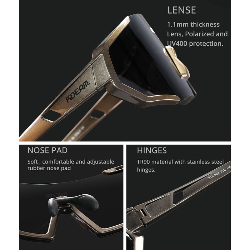 KDEAM Shatterproof TR90 Active Polarized Sunglasses Men Ultra-grip Rubber Nose Multilayer Mirror Lens + Clear Lens KD0802
