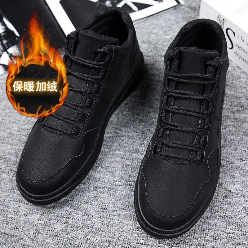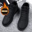 Keep Warm Men's Red High-Top Leather Skate Shoes Flat Lace-Up Sneakers Versatile Casual Streetwear Non-Slip Grip Sole Footwear