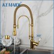 KEMAIDI Golden Spring Pull Down Kitchen Sink Faucet Hot & Cold Mixer Crane Tap with Dual Spout Deck Mounted Hot Cold Faucets