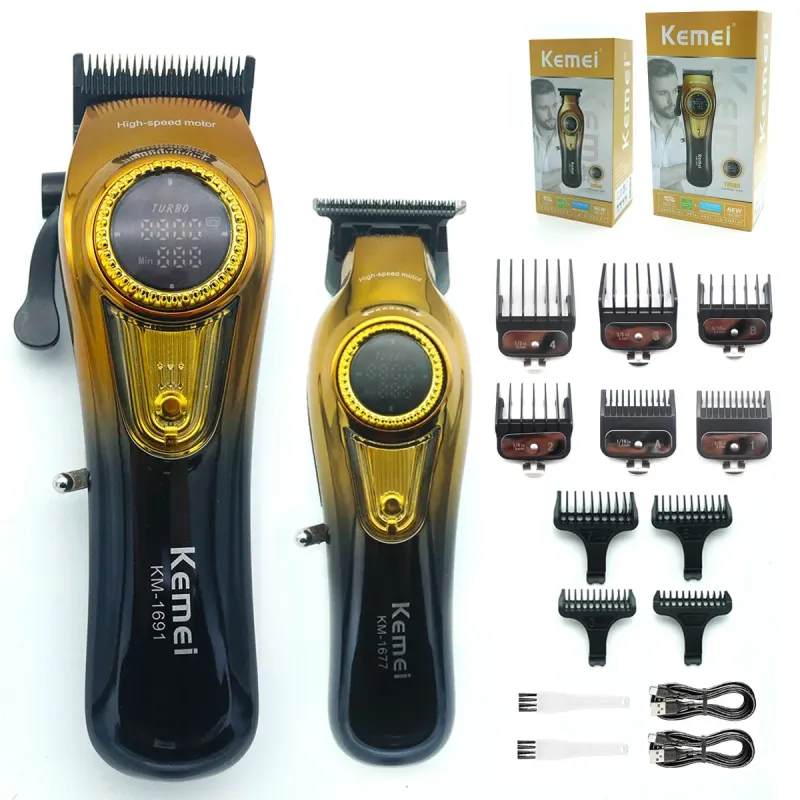 Kemei 1691 1677 T228 Professional Barber Cutting Machines Kit Rotation Speed Adjustment LED Display Men's Hair Clipper Trimmer