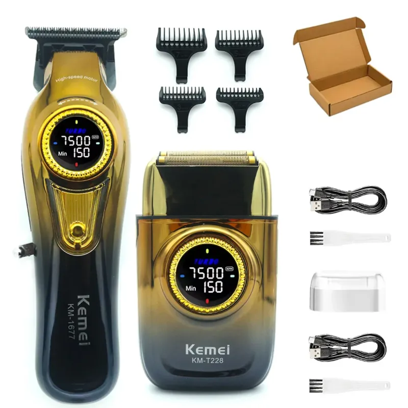 Kemei 1691 1677 T228 Professional Barber Cutting Machines Kit Rotation Speed Adjustment LED Display Men's Hair Clipper Trimmer