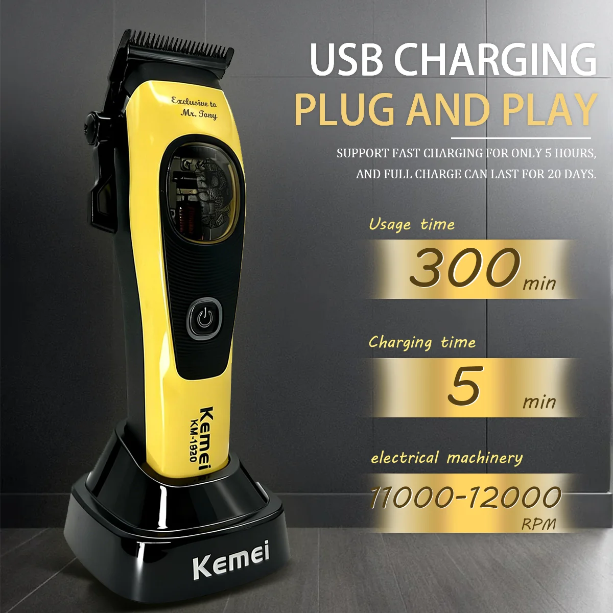 Kemei Clippers Professional Hair Clippers Adjustable Haircut Machine Charging Base Electric Hair Clipper For Man KM-1921 KM-1920