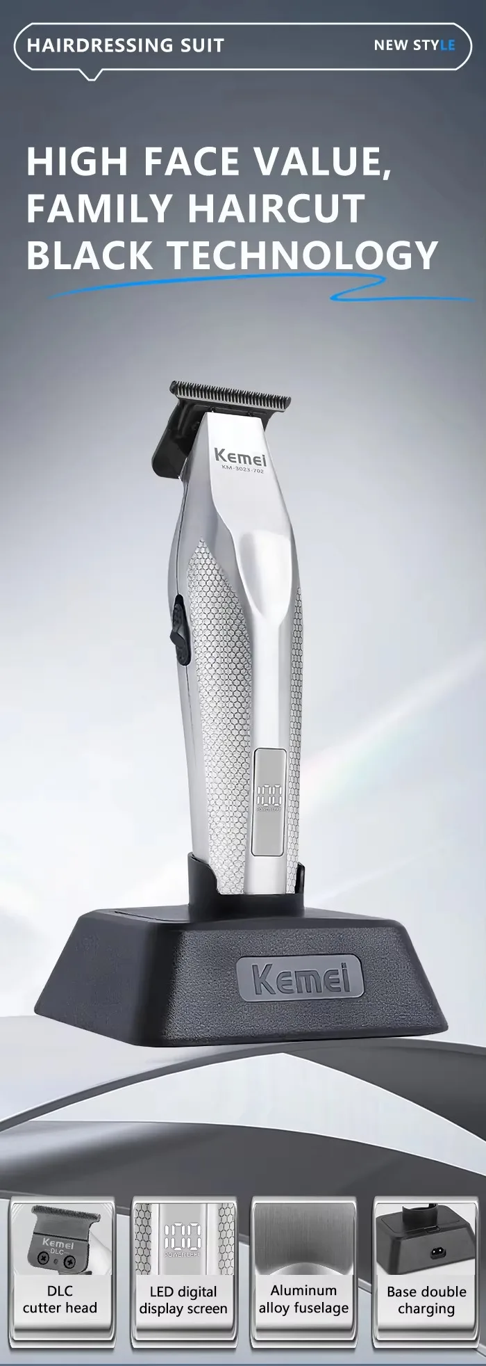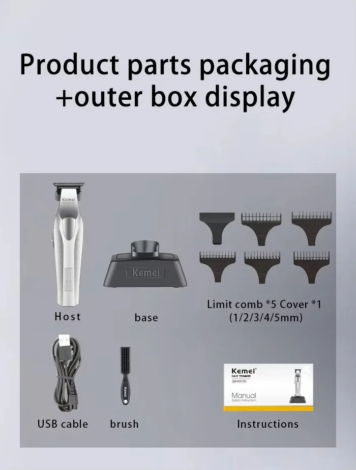 Kemei Hair Trimmer Professional Hair Clipper Electric Haircut Machine Rechargeable Hair Clipper 0 MM Trimmer for Men KM-3023-702