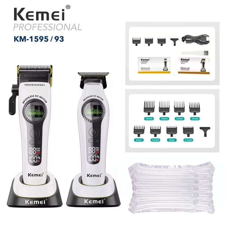 The KM - 1593 hair clipper has a super - engine externally - mounted brushless motor. It reduces friction and wear, operates quietly, and offers long - lasting power to effortlessly handle thick hair, suitable for both pros and home users.