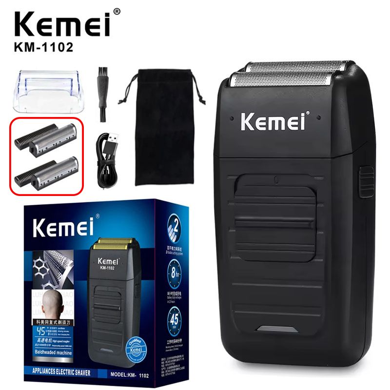 Kemei KM-1102 Rechargeable Electric Shaver For Men Cordless Floating Beard Razor Machine Twin Blade Face Care Strong Trimmer