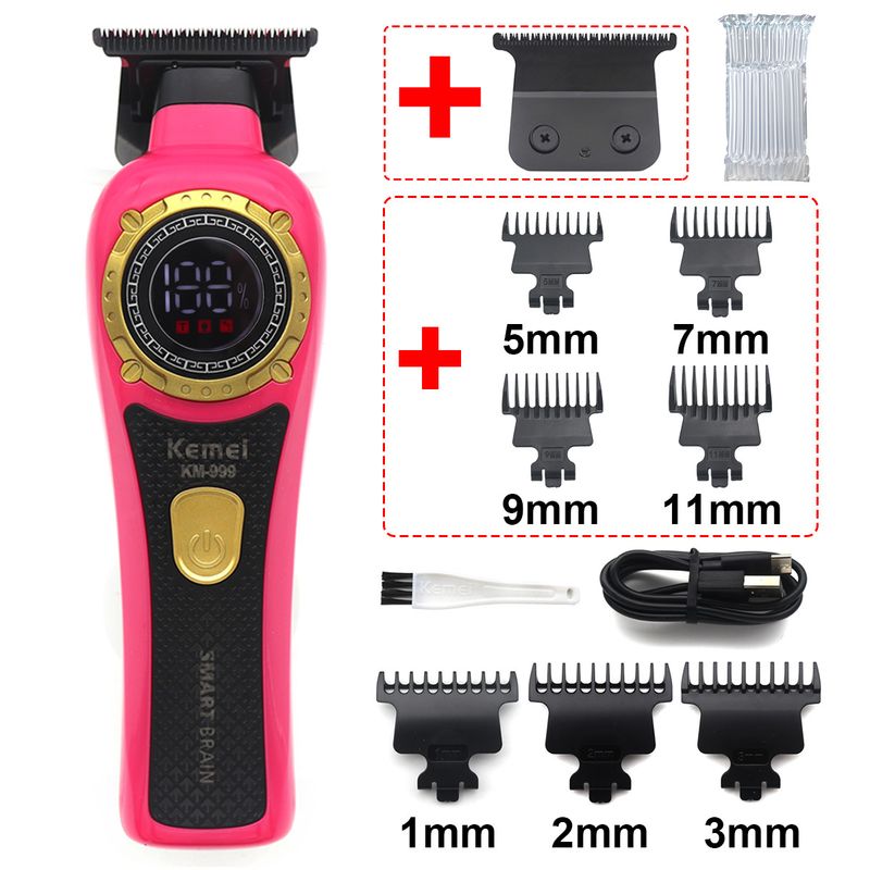 Kemei KM-999 Hair Trimmer for Men DLC T-Blade Zero Gapped LED Display Cordless USB Professional Hair Clipper Finishing Machine