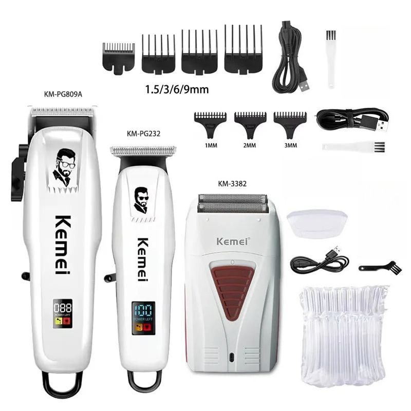 Kemei KM-PG809A KM-PG232 LCD USB Charging Hair Clipper Adjustable Professional Cutting Machine KM-3382 Shaver Trimmer for Men