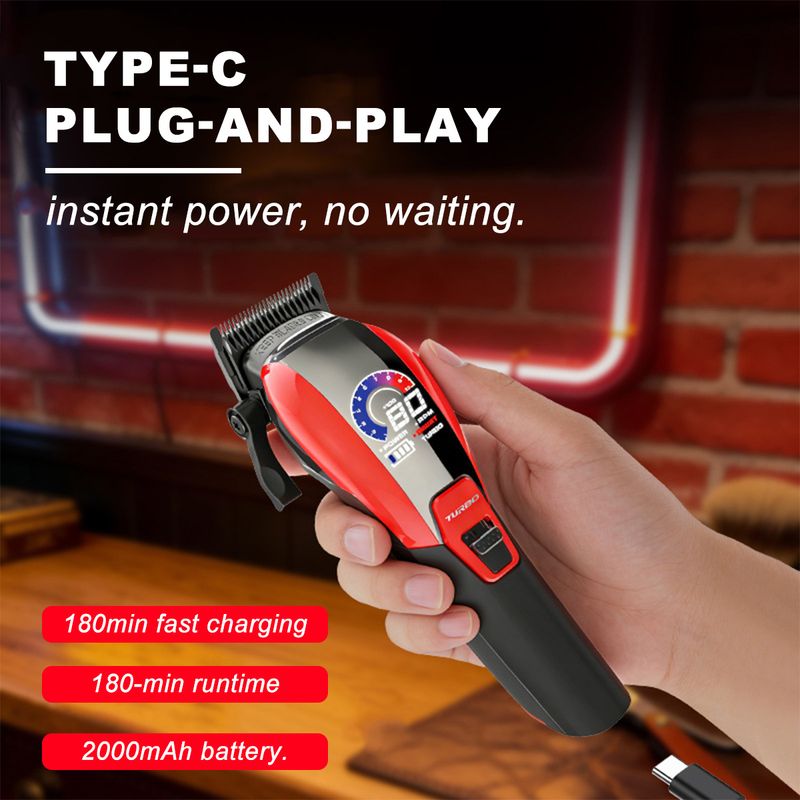 TFT-LCD Display with Lighting: Clear, real-time battery level, speed gear, and charging status; built-in lighting assists in low-light barbering conditions.