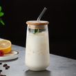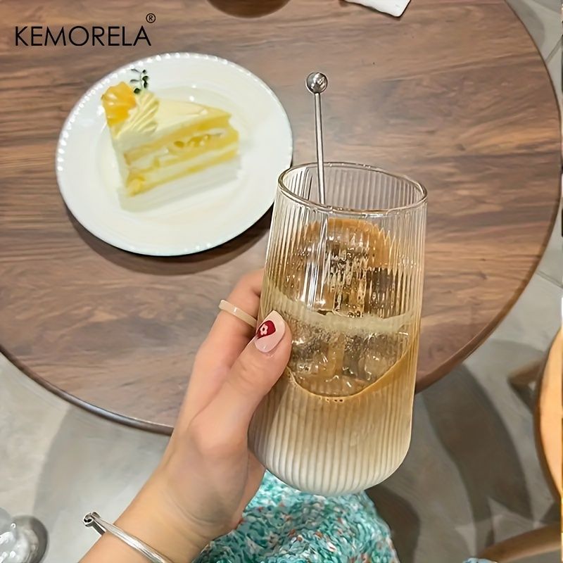 KEMORELA 4/6PCS Heat-Resistant Vertical Stripes Clear Glass Cup With Lid Straw Coffee Cup Milk Beer Juice Tea Cup Drinking Cup