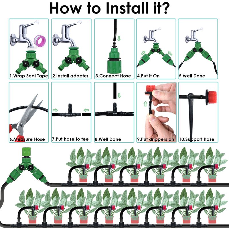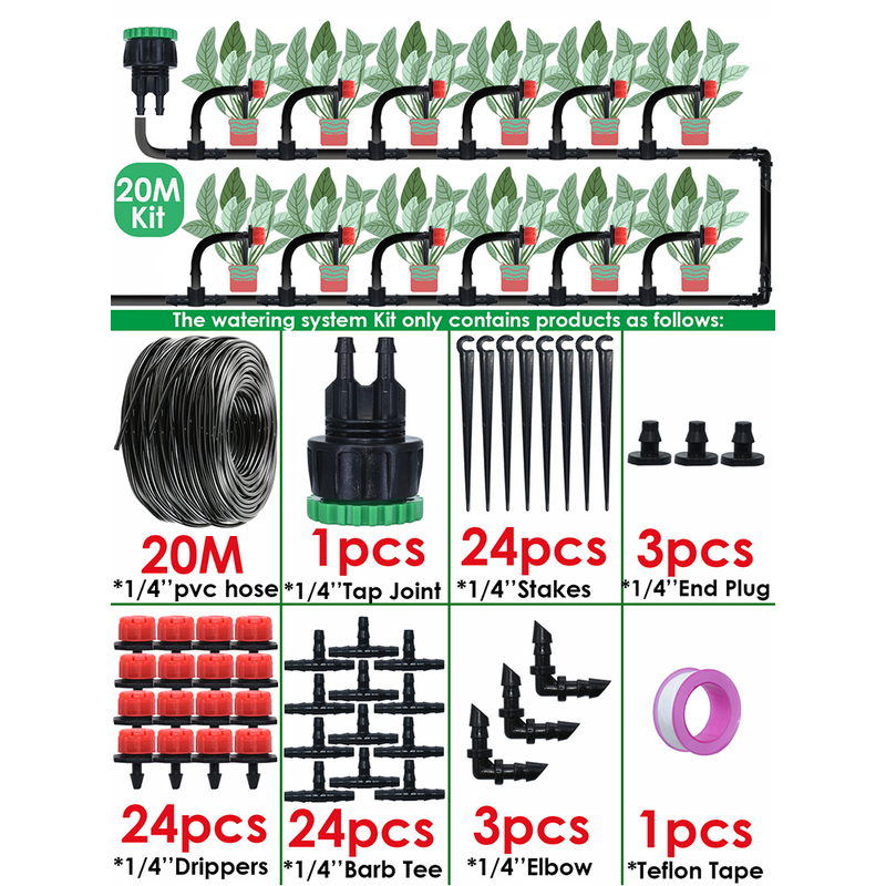 KESLA Garden Drip Irrigation Automatic Watering System Kit 1/4'' Nozzles for Bonsai Pot Plant Lawn Flower Vegetable Greenhouse