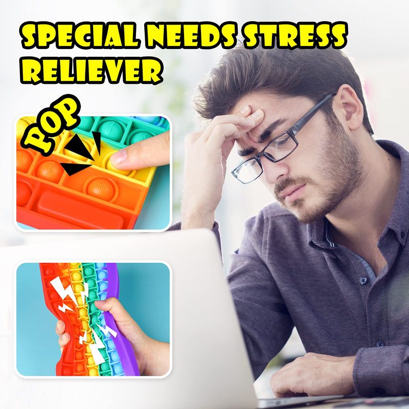 Keyboard Push Bubble Fidget Sensory Toys Rainbow Popping Silicone Game Toy Anxiety & Stress Reliever Autism Toy for Kids and Adu