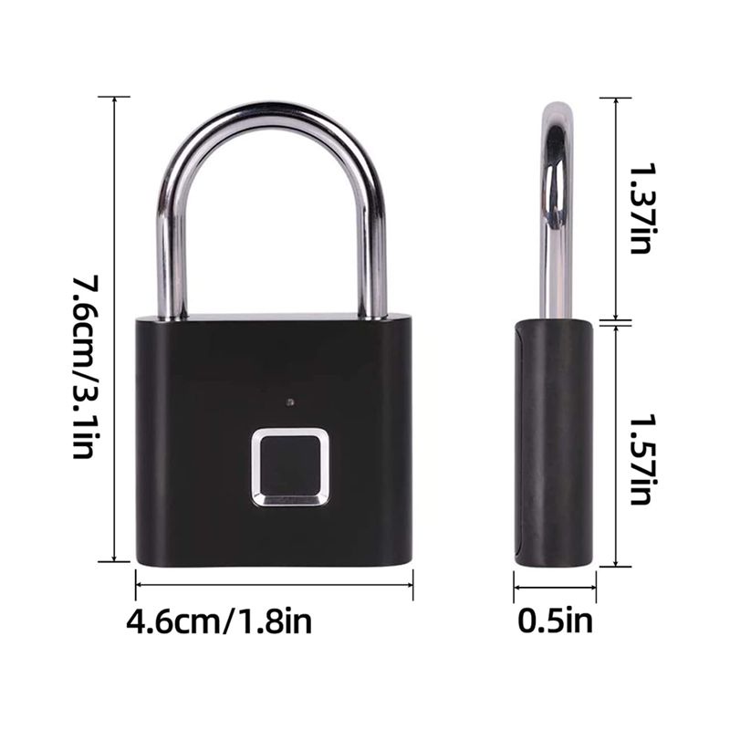 Keyless Smart Fingerprint Padlock USB Charging Fingerprint Lock Waterproof Door Lock 0.2sec Unlock Security Padlock for House