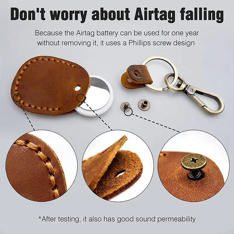 5.Handmade Genuine Leather: The airtag keychain is made of premium cowhide with soft microfiber interior and stitched by hand, very delicate and durable!