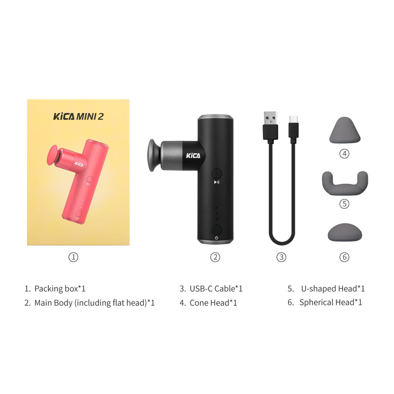 KiCA Mini 2 Fascia Gun 4 Gear Aluminum Portable 3000rpm Deep High Speed 3 Massage Heads Gun for Sport, 195g