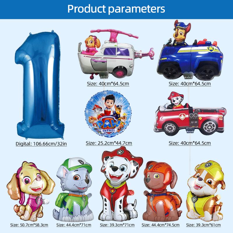 kid Birthday Blue Number Balloon Paw Patrol Theme Animal Airplane Car Helium Balloons for Festival Activities Party Decoration