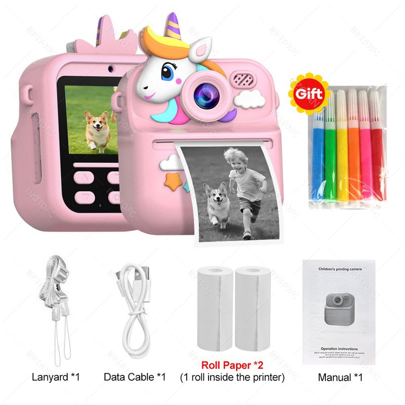 :🌈🌈【Convenient USB Rechargeable Battery 】 No more worries about batteries! This Kid Camera Digital comes with a built-in large-capacity lithium battery that provides nearly 2-3 hours of continuous photo-taking after a full charge.