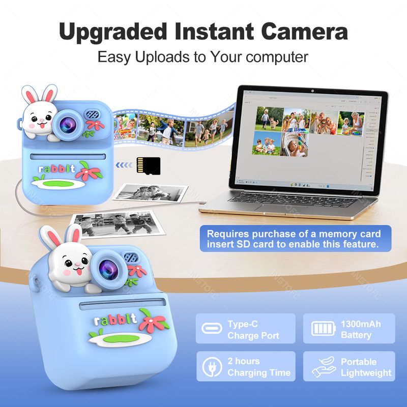 :🌈🌈【Convenient USB Rechargeable Battery 】 No more worries about batteries! This Kid Camera Digital comes with a built-in large-capacity lithium battery that provides nearly 2-3 hours of continuous photo-taking after a full charge.