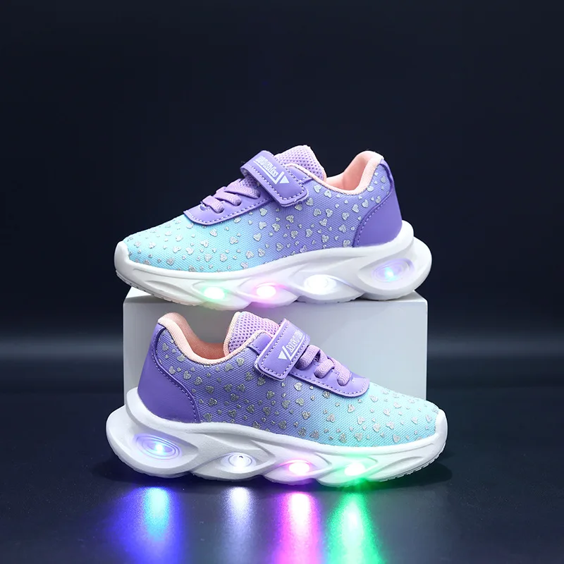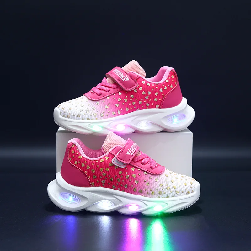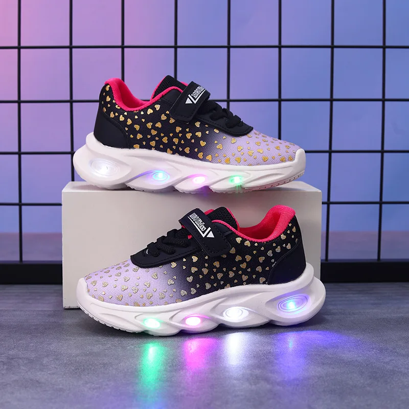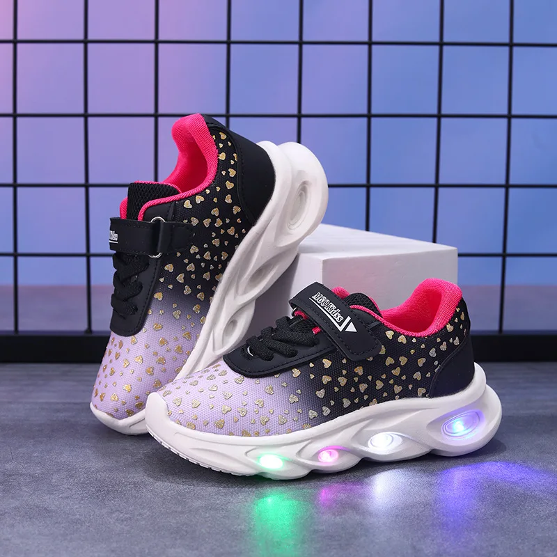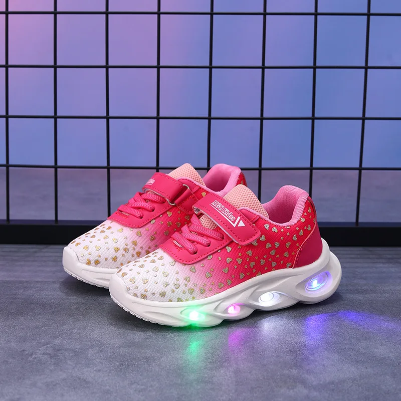 Kids' Casual Shoes Children Led Light Spring Outdoor Sneakers For Breathable Anti-slip Black Blue Pink Size 21-30