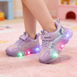 Kids'Casual Shoes Led Light Sneakers Cartoon PU Leather Spring Outdoor For Breathable Anti-slip Sneakers Pink Purple Size 21-30