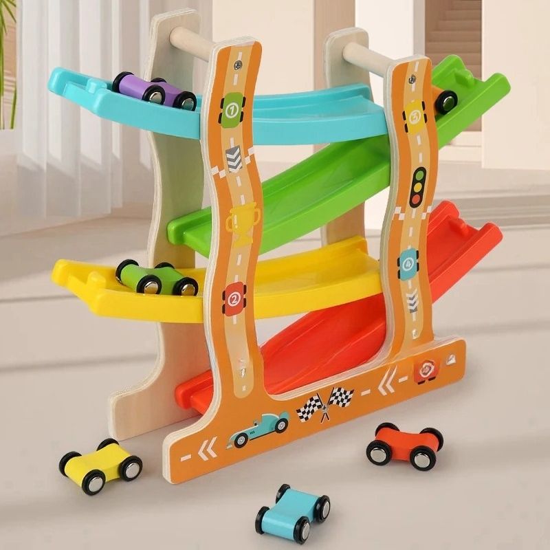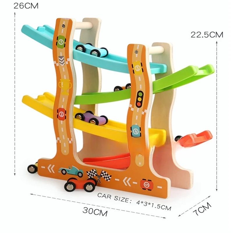 The Montessori car ramp toy is suitable for children aged 18 months and up, making it perfect for both boys and girls.This activity toy is designed to promote skills such as hand-eye coordination and motor skills in a fun and engaging way. Kids will focus on watching the car roll down the track, improving their visual tracking ability.