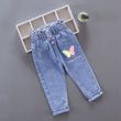 Kids Girl Jeans Floral Cartoon Long Pants Spring Autumn Graffiti Painting Print Casual Trousers with Hole Children Denim Pants