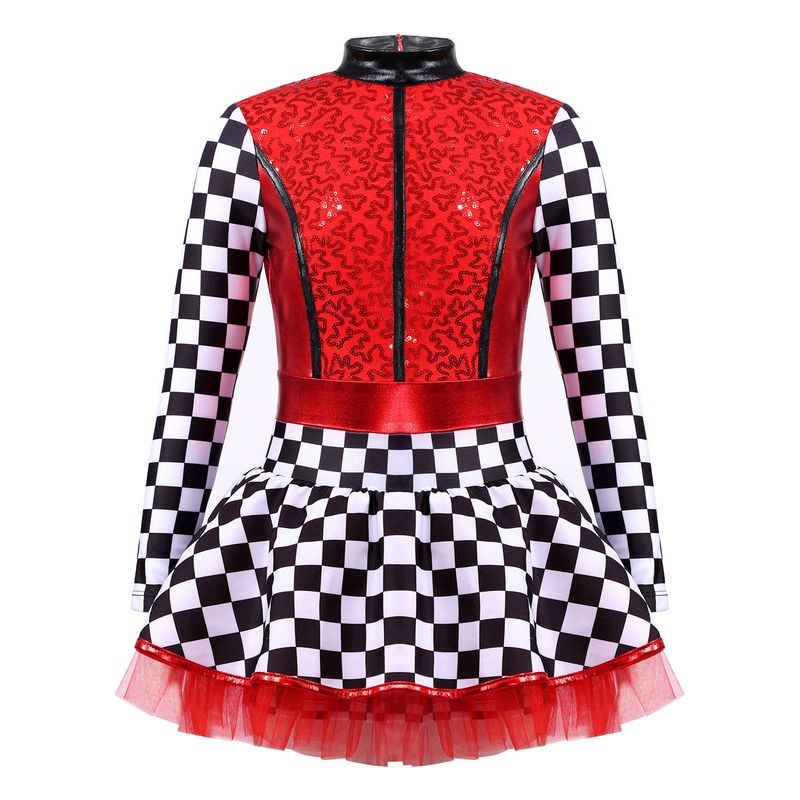 Three layers tutu skirt, top with checkerboard pattern. Boy-cut inner shorts for security.