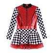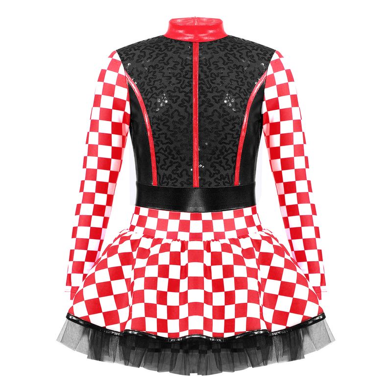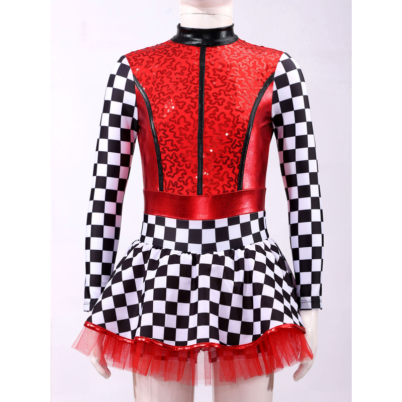 Three layers tutu skirt, top with checkerboard pattern. Boy-cut inner shorts for security.