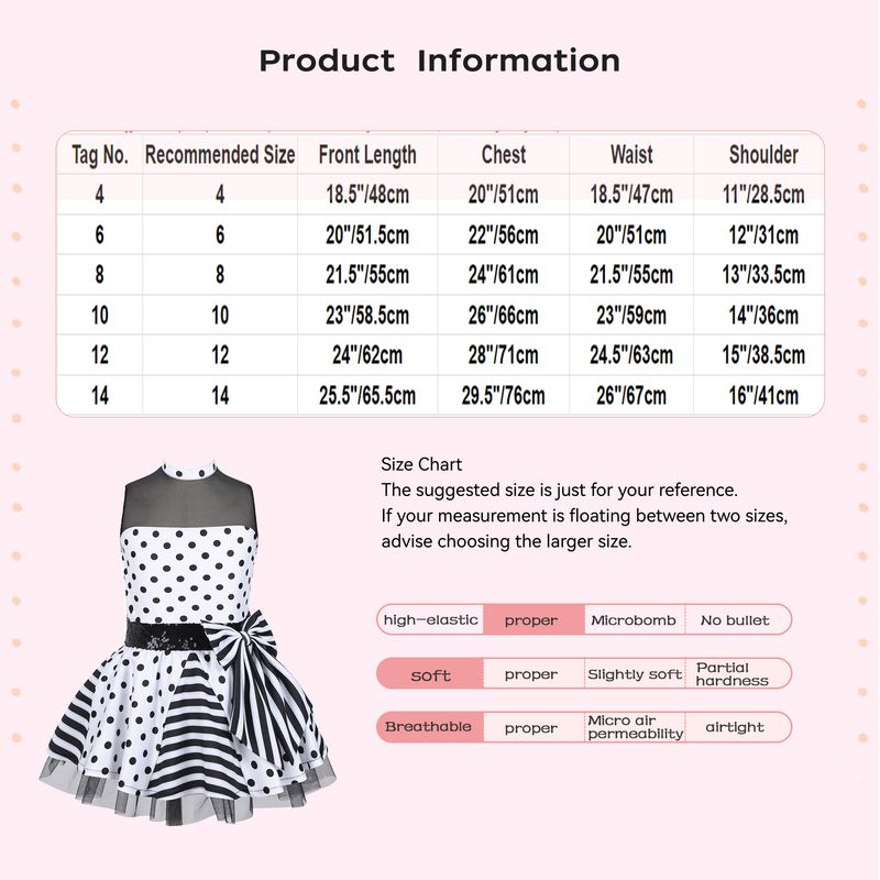 Shiny sequins at waist, hollow back, tutu mesh style, a layer polka dots with striped patchwork cloth in outside, a layer mesh in middle.