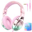 Girls Wired Headphones Kids Leather Foldable Stereo Headset Noise Cancelling Mic for IPad TV Children's Christmas Gifts