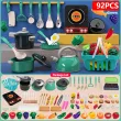Kids Kitchen Toys Set 92/86/69/59PCS Play Kitchen Accessories Kit with Play Pots Pretend Food Cooking Toy Toddler Girls Boy Gift