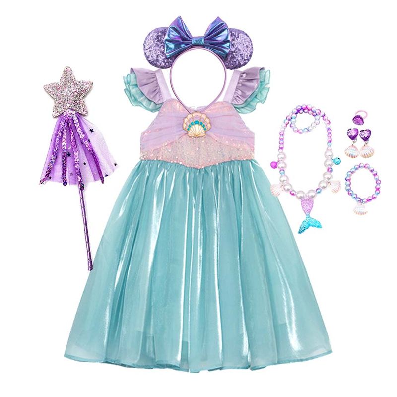 Kids Little Mermaid Summer Girls Casual Dress Ariel Princess Dress Cute Birthday Party Costume Kids Dress