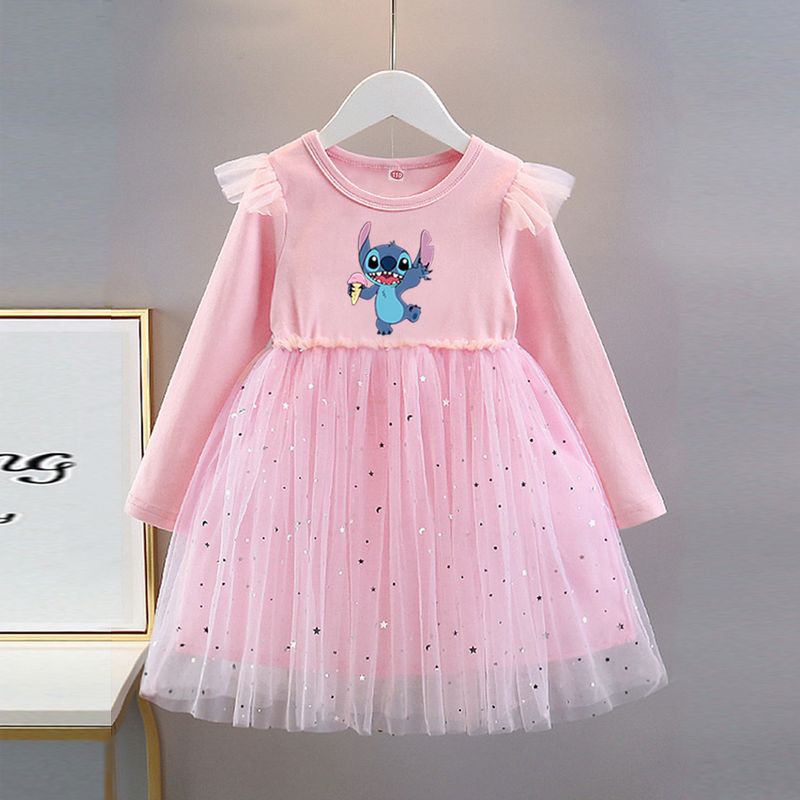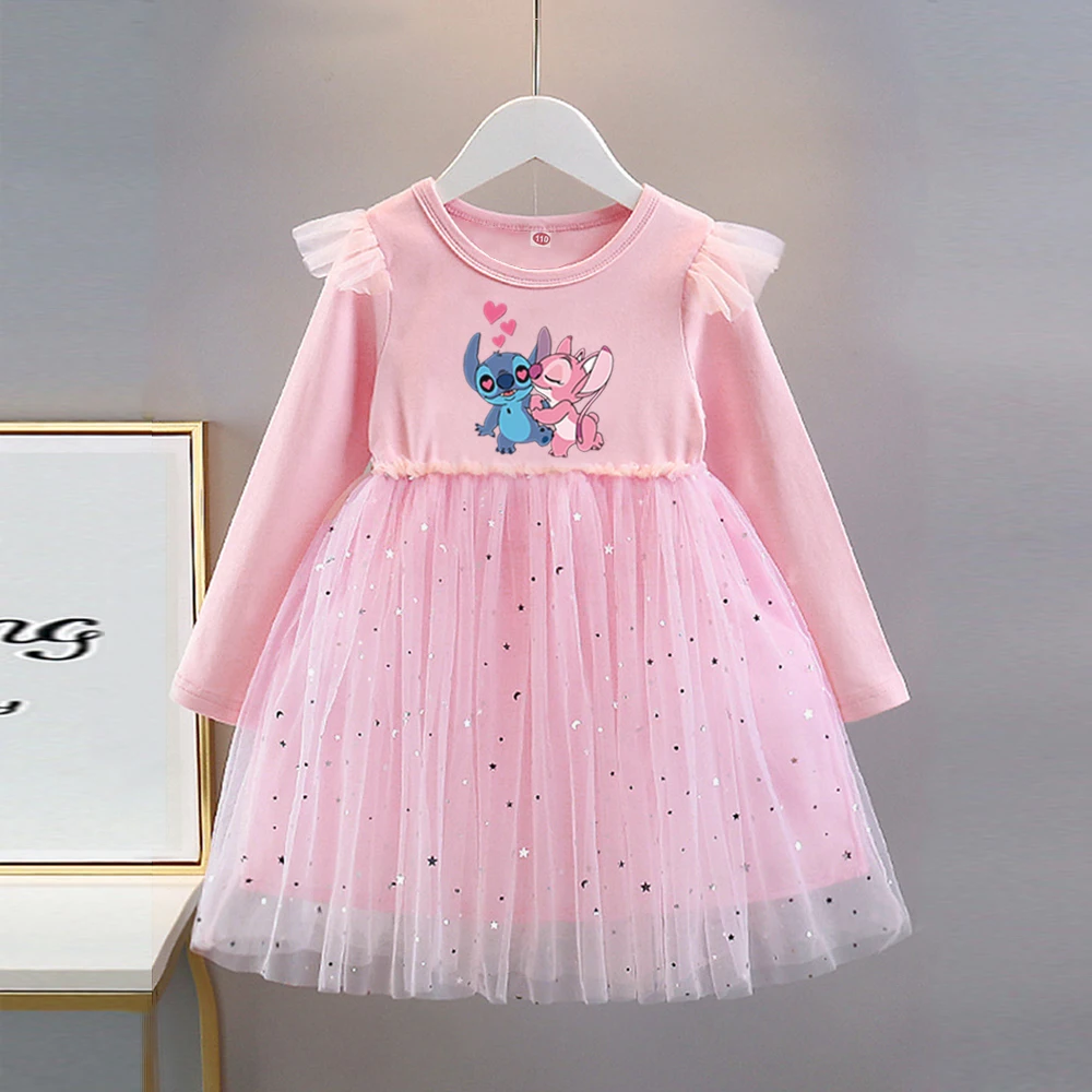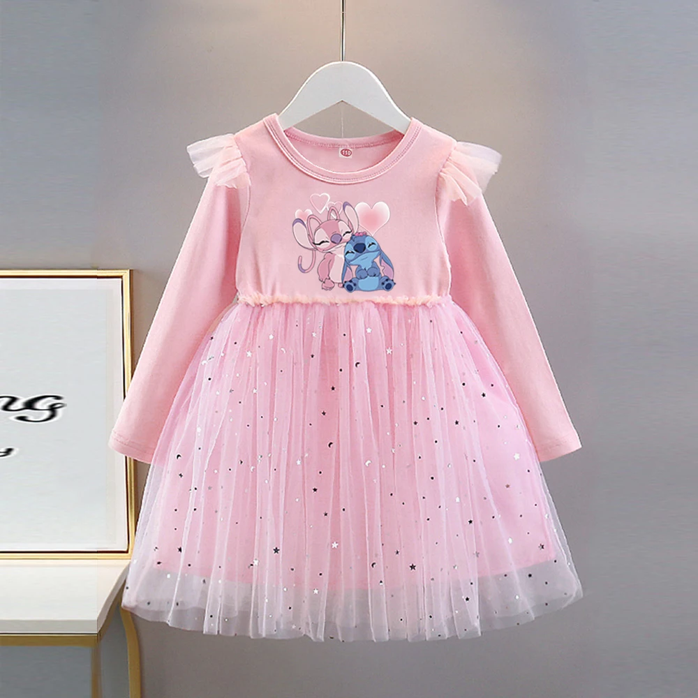 Kids New Clothes Autumn Long sleeves Girls Dress Disney Fashion Children Stitch Princess Dresses Baby Girl Cute Birthday Party