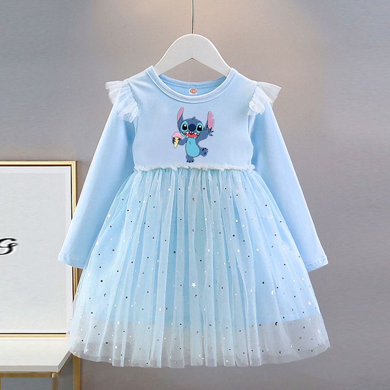 Kids New Clothes Autumn Long sleeves Girls Dress Disney Fashion Children Stitch Princess Dresses Baby Girl Cute Birthday Party