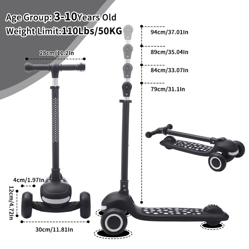 BUILD TO LAST: UBRAVOO Kid scooter design with 4 adjustable height options to accommodate ages 3 to 10 years old.The 3 wheel scooter is a perfect gift to grow with children.