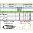 Note:Foot Length +(0.5~1)cm=insole length