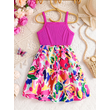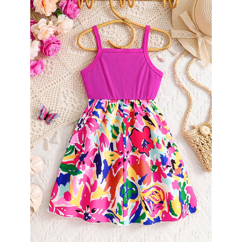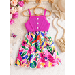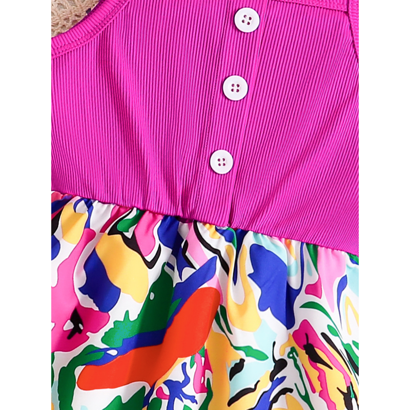 Kids Summer Dress Girls Fashion Cute Casual dress Pink sleeveless graffiti print Girls Summer outdoor vacation casual dress
