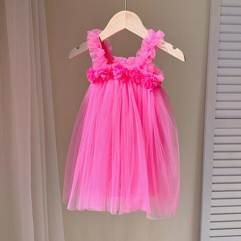 Kids Sweet Mesh Dress 1-6T Summer Children Mesh Tulle Princess Slip Tutu Dresses Girls 6 Colors 3D Flower Mermaid Birthday Dress
