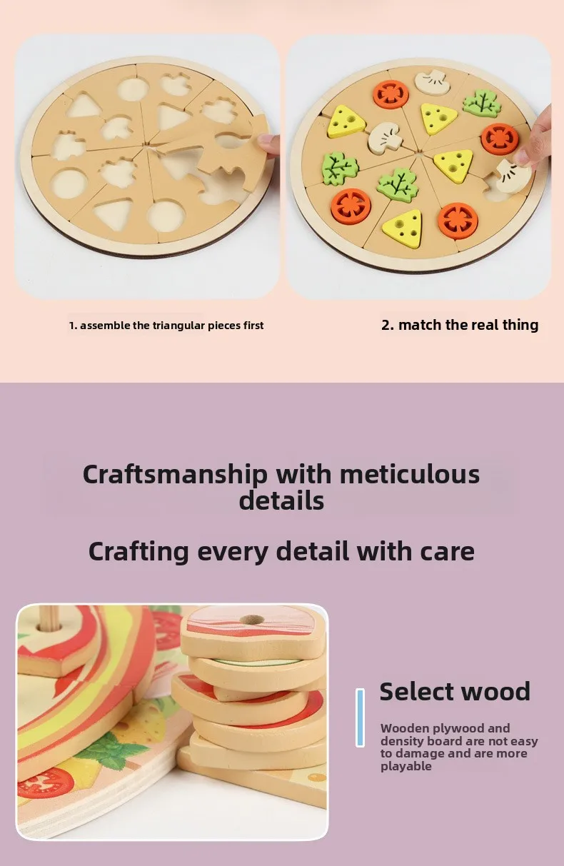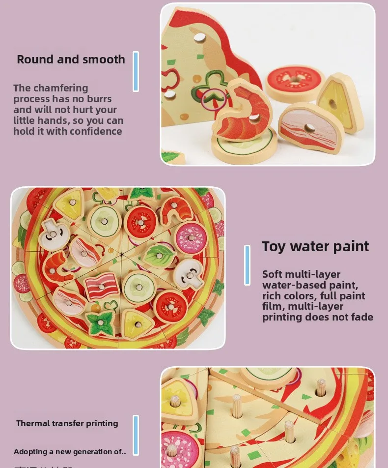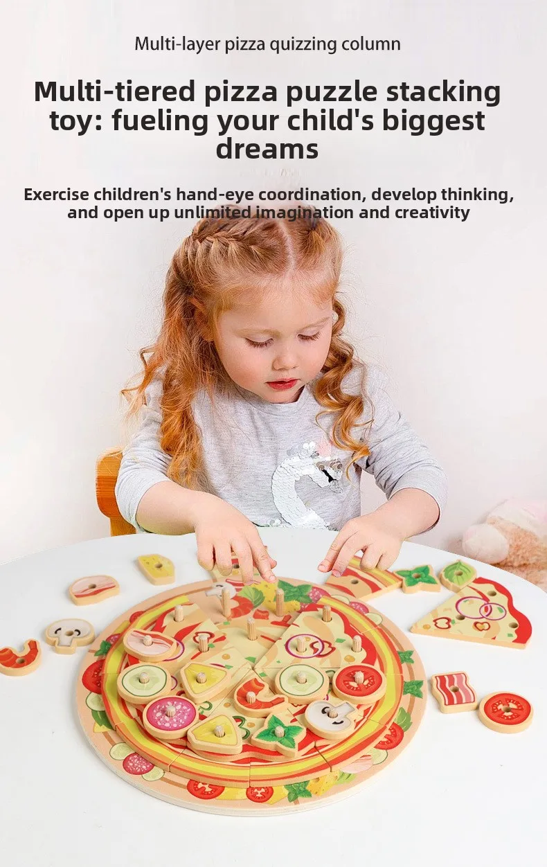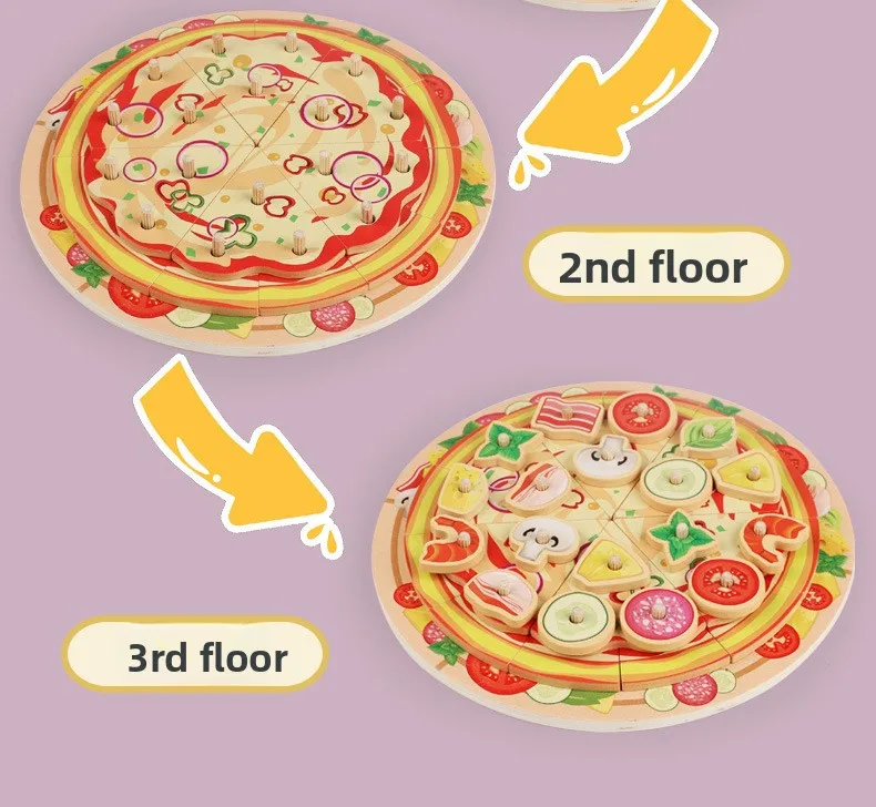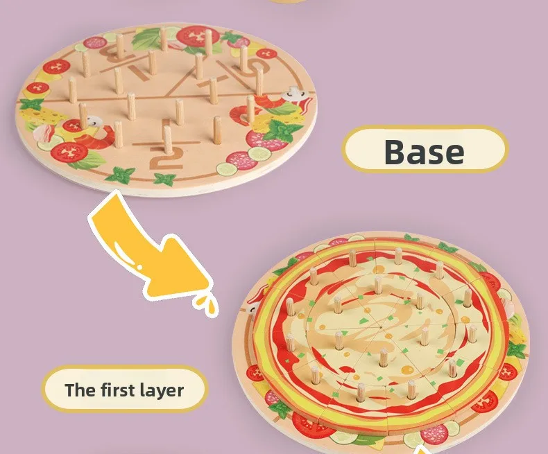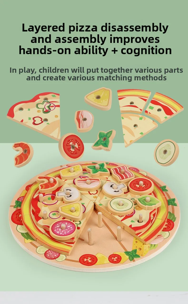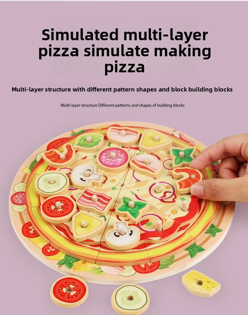 Kids Wooden Kitchen Toy DIY Simulation Multi-layered Pizza Make Games Montessori Fine Motor Skills Eduational Creative Toy Gift