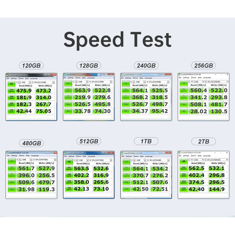 There are differences in the read and write speeds of different capacities, different windows version or computer model still have speed differences, so please treat them rationally. In most times the speed of laptop should be lower than Desktop.