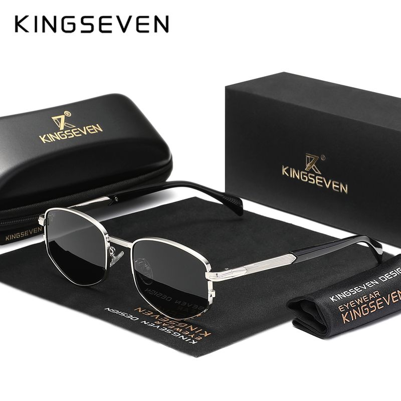 KINGSEVEN Trendy Small Frame Diamond-shaped Metal Sunglasses for Men UV400 Outdoor Fishing Sunshade Eyewear Decorative