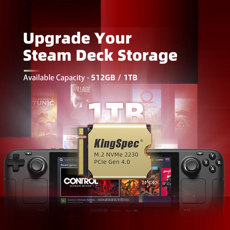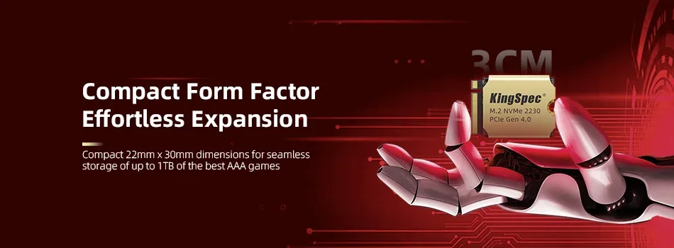 Compact 22mm x 30mm dimensions for seamless storage of up to 1TB of the best AAA games.