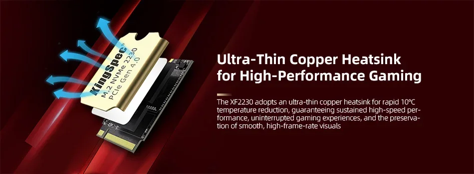 The XF 2230 adopts an ultra-thin copper heatsink for rapid 10°C temperature reduction, guaranteeing sustained high-speed performance, uninterrupted gaming experiences, and the preservation of smooth, high-frame-rate visuals.