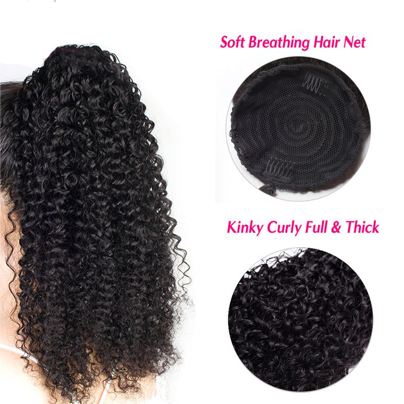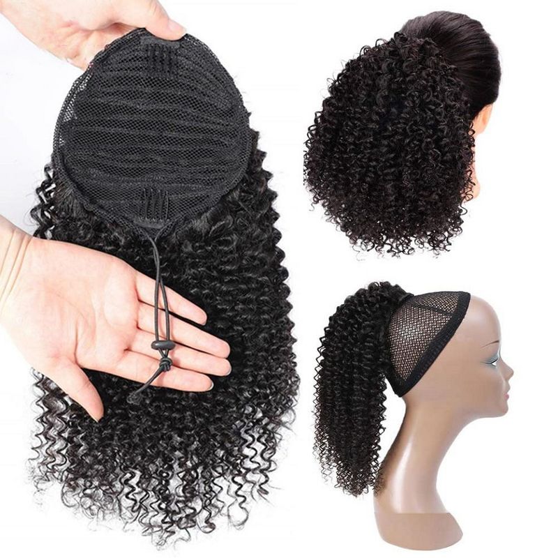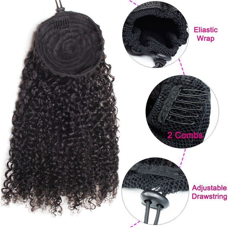 Kinky Curly Ponytail Extension Drawstring Human Hair Clip in for Women Curly Wave 100/160G Brazilian Virgin Afro Curly Ponytail