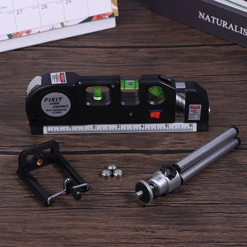 Kit Tool Laser LeveL Line MuLtipurpose Laser LeveL Standard Cross Line Lase Measure Tape RuLer with MetaL Tripod Stand