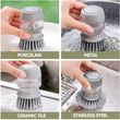【Multifunctional Pressing Cleaning Brush】Crafted with high-temperature resistant nylon brush filament, this scrub brush is gentle yet effective, ensuring it won't harm non-stick pan coatings. The entire Dish Brush with Soap Dispenser is washable, making cleaning a breeze.