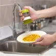 【Dish Scrubber with Soap Dispenser】Unscrew the lid on the top, add dishwashing liquid to the bottle body, press it gently, and it will flow out from the center of the brush. Save you the process of taking soap liquid, simplify your work process, and save you time.
